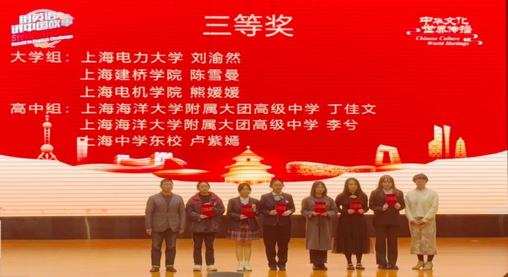 本次临港新片区选拔赛共有上海海洋大学、上海海事大学、上海建桥学院、上海电力大学、上海电机学院以及上海中学东校、大团高级中学等千余名学子踊跃参加。我院学生胡田田、施良宇、陈雪曼三位同学经过校内层层选拔脱颖而出,代表学校参加临港新片区选拔赛。大赛共评选出一等奖一名、二等奖两名、三等奖三名。我院三位学子通过流利的英文演讲和精彩的才艺表演,征服了各位评委,最终施良宇同学荣获大学组二等奖、陈雪曼同学荣获大学组三等奖、我院荣获“最佳组织奖”。