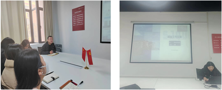 2024届毕业班辅导员周晓帆、岳会锦、宫梦珂、孙莉老师分别围绕毕业生学业情况、实习就业现状和就业困难分析等方面展开了汇报。同时,杨静老师作为学校就业先进代表,围绕把握时间节点、建立情感链接、多方联动沟通等方面分享就业工作经验。