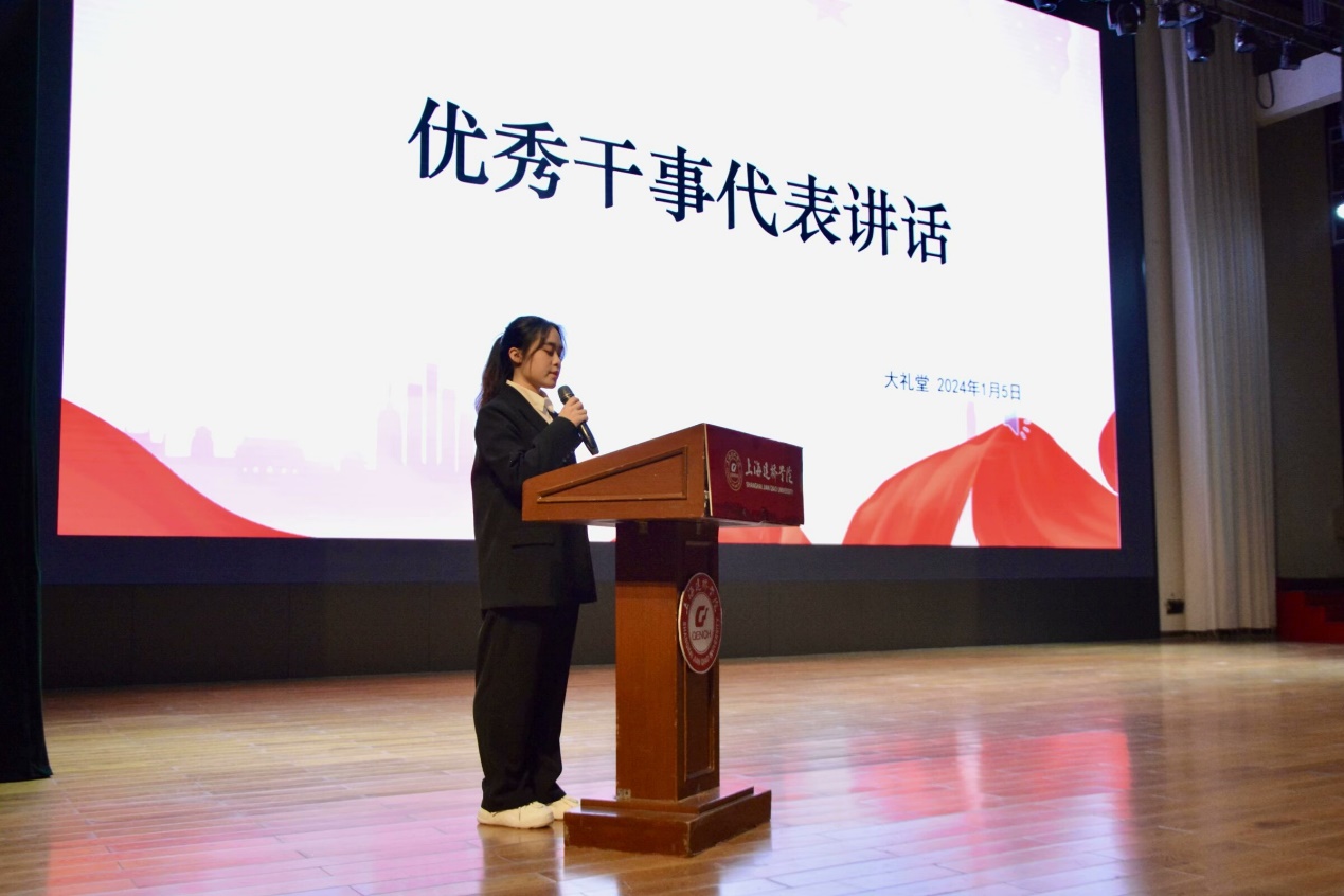 大会伊始,学院分团委学生会指导老师江梦婷老师做开场致辞,充分肯定了过去一年分团委学生会的工作,并对新一届团学骨干提出了四点希望:一要加强思想政治理论学习,提高政治敏锐度和辨别力;二要增强综合素养,争做新时代高质量发展有为青年;三要明确自身定位,端正做团学工作的态度;四要坚持知行合一,树立为学生、为学院、为学校服务的根本宗旨。
