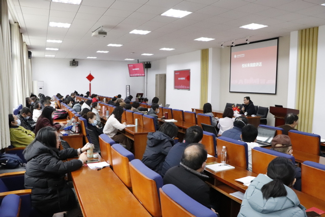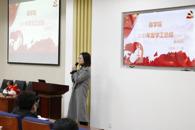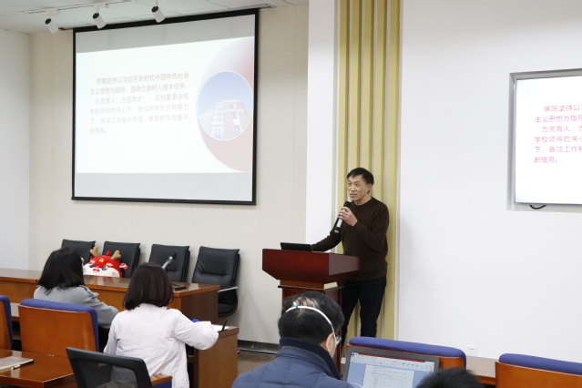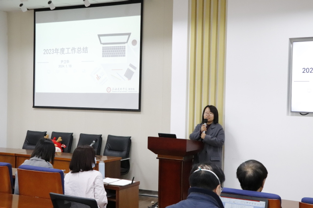 随后,尹卫华副院长从“专业建设”“内涵建设”“教师成长”“实验室建设”“产教城融合”“国际交流”“日常教学管理”等几方面总结了学院一年以来的教育教学工作,就2024年教育教学工作提出思考。她讲到:“学院要围绕2025年审核评估检查的重点,在课程考核材料归档、毕业论文指导、课程大纲修订、教学科研项目申报等方面下功夫”。俞海燕副书记则从“学工队伍概况”“工作开展情况”“育人成效”“不足与展望”几个方面,围绕‘三位一体’‘五育并举’汇报了一年以来的学生工作。她提到:2024年学工重点工作将围绕朱瑞庭校长期末工作报告中指出的加强师德师风和学风建设,上心、用心、精心做好教育教学工作,将课堂管起来、教学活起来、学生忙起来、学风好起来,各安其位、各司其职、各负其责地做好学生工作。