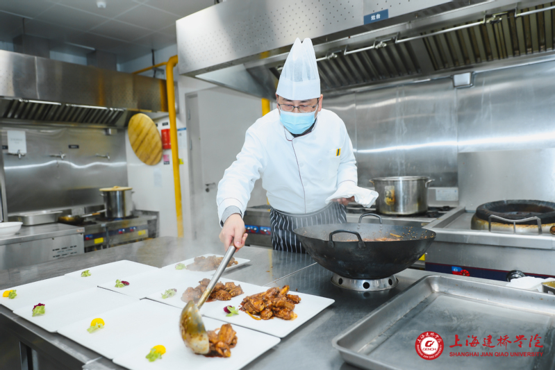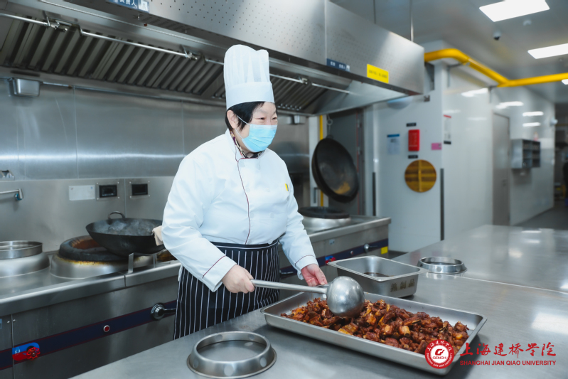 校领导掌勺为留校学子做年夜饭,一直是学校迎春年夜饭的传统,今年已经是第7个年头。华灯初上,学校南三楼餐厅张灯结彩,喜气洋洋,挂满春联和灯笼,年夜饭定在晚上5点开席,一道道冒着热气的美味佳肴呼之欲出。今年共有6位校领导下厨烹饪。朱瑞庭校长来到厨房,脱下外套,戴上围兜,一顿忙活之后,色泽诱人、鲜嫩多汁的“啤酒鸡翅”终于出锅。朱瑞庭校长说,给学生烧菜,就像给自己孩子烧菜一样,他这道菜的寓意是 “祝愿同学们展翅高飞、成为建设祖国的中坚力量”。江彦桥书记掌勺厨房里的——腌笃鲜,是具有代表性的上海本帮菜,吃下一口腌笃鲜,满满春天的“鲜”味;夏雨副书记做的“剁椒鲈鱼”这道菜,也十分受欢迎,象征“年年有余,红红火火”,鲜香辣爽,开胃又下饭。俞晓光副校长为了给学生献上自己的拿手菜“红烧牛尾”,一大早就从市区赶到食堂,“这个菜是功夫菜,要选择好食材,还要注意火候,要烧得入味,就得慢炖,没两个小时不行的” ,真是有味有情有温度。 网红“宝总泡饭”也出现在年夜饭的餐桌,受到同学们的欢迎。掌勺的陈伟副校长说,年夜饭体现的是一种亲情,做这套泡饭是希望大家懂得感恩父母,感恩家人,同时,宝总泡饭寓意“满堂彩”,祝愿大家吃了这个泡饭,在2024年都有“好彩头”,赢得“满堂彩”。陈峥副校长为大家呈上的 “糖醋小排”,是老上海特色本帮菜,外焦里嫩,甜而不腻 ,一口咬下去,满嘴“妈妈的味道”,同学们赞不绝口。