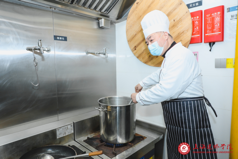 校领导掌勺为留校学子做年夜饭