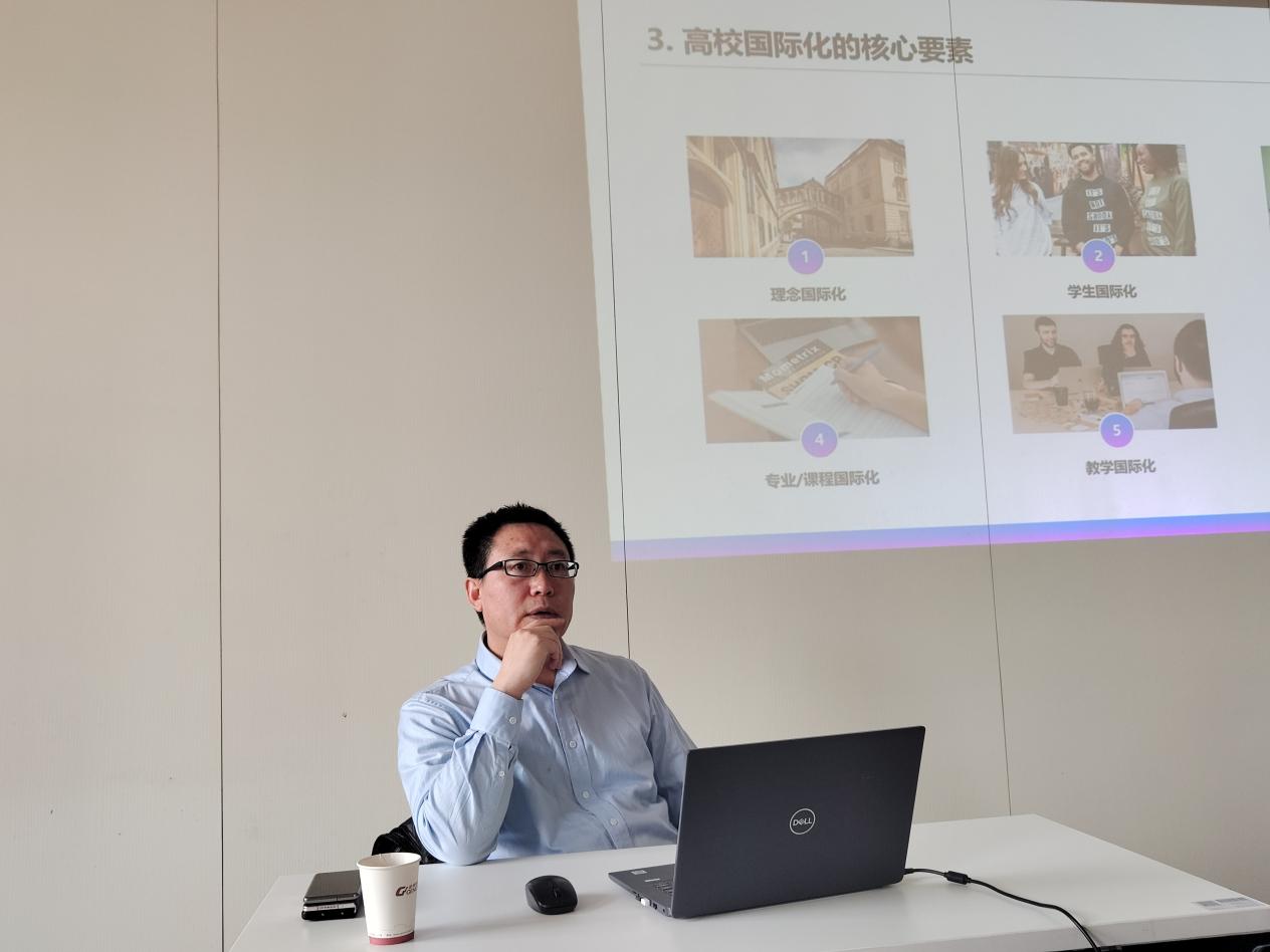 为进一步加强学院教职工政治理论学习,切实提高教职工的政治素质和理论水平,根据国际教育学院教职工政治理论学习计划,我院党总支联合机关党总支第五党支部以“如何推进高质量的教育国际化”为主题,通过自学、集中学习和交流研讨的形式进行专题学习。本次专题学习中,特邀上海市高教学会国际交流专业委员会秘书长、上海交通大学应用型高校发展研究中心执行主任王武东副教授作“应用型高校教师国际化素养的培养”专题报告会。参加报告会的有国际教育学院全体教职工和机关党总支第五党支部部分党员,会议由国际教育学院党总支书记周英芬主持。