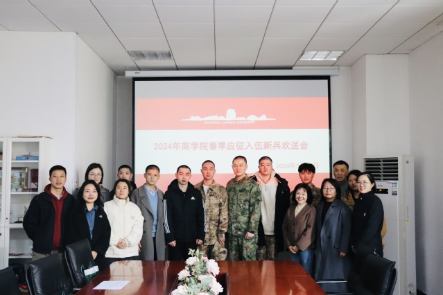 携笔从戎,不负韶华,扬帆启航,逐梦军旅。3月12日,商学院举行2024年春季新兵入伍欢送会,欢送8位同学走向军营,开启青春崭新的篇章。出席会议的有商学院院长高健、商学院党委书记刘爱香、商学院副院长尹卫华、商学院党委副书记俞海燕、负责征兵横向老师,相关辅导员们以及全体入伍新兵。