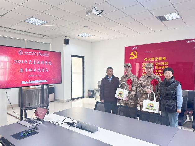 艺术设计学院2024年春季征兵共报名17位同学,男兵14名(其中9名毕业班学生,5名非毕业班学生),女兵3名。经过报名条件审核、严格的初检、政审、复检、定兵等程序,我院2024年春季征兵共2名同学(黄晶、王燊)如愿入伍。艺术设计学院党委书记周智明、副书记王丽佳为定兵学生发放学院准备的纪念品。