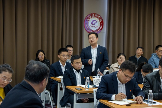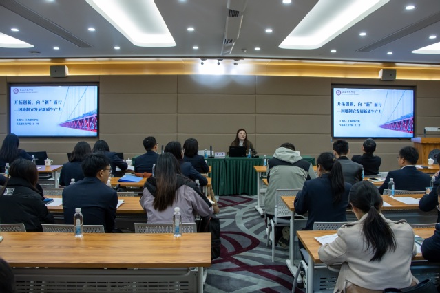 随后,马克思主义学院的党员教师王一丹做了主题为“开拓创新,向新而行 ——因地制宜发展新质生产力”的主题报告,报告中以习主席在党的二十大报告中提出的新质生产力为着眼点,结合企业实际,从基础研究、人才培养、加强产业协同等角度,来阐述高质量的发展与新的生产力之间的必然关联,从而思考企业与学校的融合发展的途径。