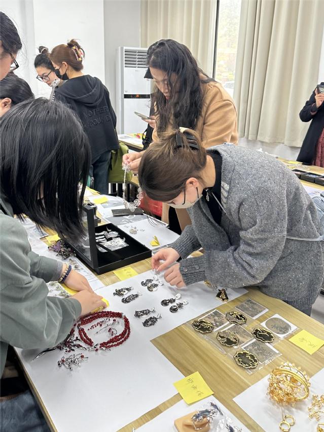 预选优秀毕业设计作品不仅仅是单一的激励同学们追求创新设计,也是对珠宝首饰产品制作工艺的锤炼。现场同学们带来了自己辛苦创作的实物作品,指导老师分别以小组形式进行了一一点评和讨论筛选,点评过程中及时发现问题,及时与学生反馈、讨论,要求学生对其后期优化,为保证作品在最后展览中达到最佳效果。通过此次优秀毕业设计作品的预选更加及时的跟进作品完成度,主动发现学生实物作品中遇到的难题,迅速的提出解决方案,有效的保证作品的最终实物效果与设计的统一性。