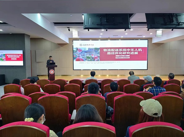 林珉博士介绍了无人机协同配送系统组成与工作原理,无人机协同配送路径优化目前国内外研究进展,以及未来研究趋势。无人机与其它类型的运输工具协同配送的新系统,是当前学术界和产业界研究的新的热点问题,与会教师听完讲座倍感兴趣,纷纷提问,大家就此展开了热烈交流与探讨。