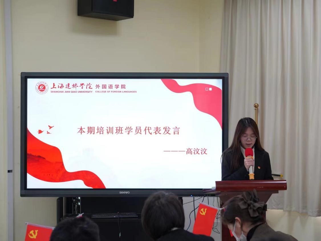 本期入党积极分子培训班学员高汶汶同学作为学员代表发言,高汶汶在班级担任班长一职,从大一到现在积极参加志愿活动,为班内同学排忧解难。她认为在培训中学懂、学深、学透是前提,要带着问题学、带着问题思;用好、用精、用活是关键,要学以致用、学用结合。她呼吁全体入党积极分子应自觉担当起时代赋予的责任,以更昂扬的姿态迎接挑战、努力学习、勇于创新,不断提高思想觉悟,爱党、爱国、爱人民,争做优秀的入党积极分子,争取早日成为一名光荣的共产党员。
