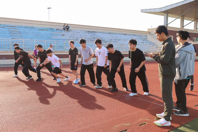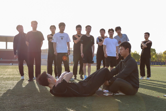 首次训练以测试入伍积极分子体能状况、退役学生介绍训练科目规范性动作为主,在学院退役大学生协会的组织安排下,学生们展现出极高的热情和良好的团队精神。