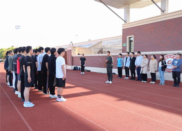 学院党委副书记马秀娟老师鸣枪开训,学院体能储备训练正式开始。