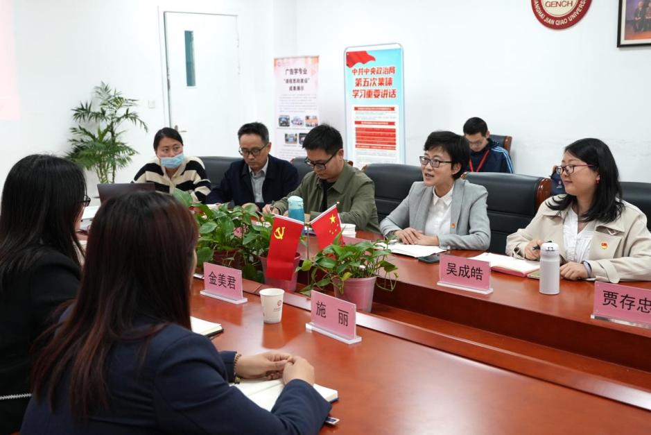 为进一步开展社会服务,加强支部共建交流,4月25日,新闻传播学院党委与方竹馨雅居民区党支部召开共建座谈会,讨论商议支部共建事宜,并开展参观学习活动。新闻传播学院党委书记徐磊教授、副书记吴成皓老师、党委委员戈智永老师、围棋系系主任孙德常老师、传播专业学生党支部书记贾存忠老师、辅导员施艳林老师、学生代表王俊杰与方竹馨雅居民区党支部书记金美君、居委会副主任严妍、居委会干事施丽参加此次共建座谈会。