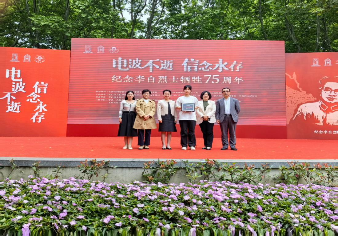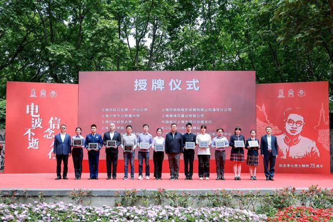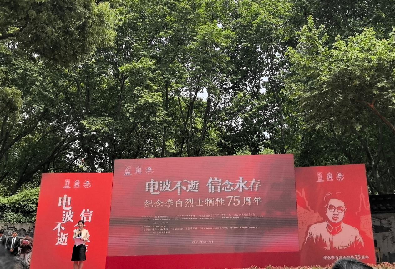 今年是李白烈士牺牲75周年、上海解放75周年。为深入贯彻落实习近平总书记关于“要注重传承城市文脉,加强文物和文化遗产保护,传承弘扬红色文化”“上海是我们党的诞生地,要用好一大会址等红色资源,弘扬伟大建党精神”的讲话精神,在李白烈士牺牲纪念日当天,“电波不逝 信念永存”纪念李白烈士牺牲75周年主题活动在鲁迅公园广场举行。此次活动由上海市国家安全局、中共上海机要局、中共虹口区委宣传部、中共一大二大四大场馆委员会指导,虹口区文化和旅游局、虹口区退役军人事务局、共青团虹口区委、中共虹口区委机要局、中共虹口区委党史办、中共四大纪念馆主办,李白烈士故居承办。上海建桥学院副校长陈伟、马克思主义学院院长宋艳华、新闻传播学院党委书记徐磊、校团委书记高雅、新闻传播学院关工委主任管国忠以及上海建桥学院李白志愿服务队代表出席此次活动。