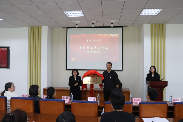由上海建桥学院武装部部长张巍、商学院党委书记刘爱香共同为商学院征兵工作站揭牌。