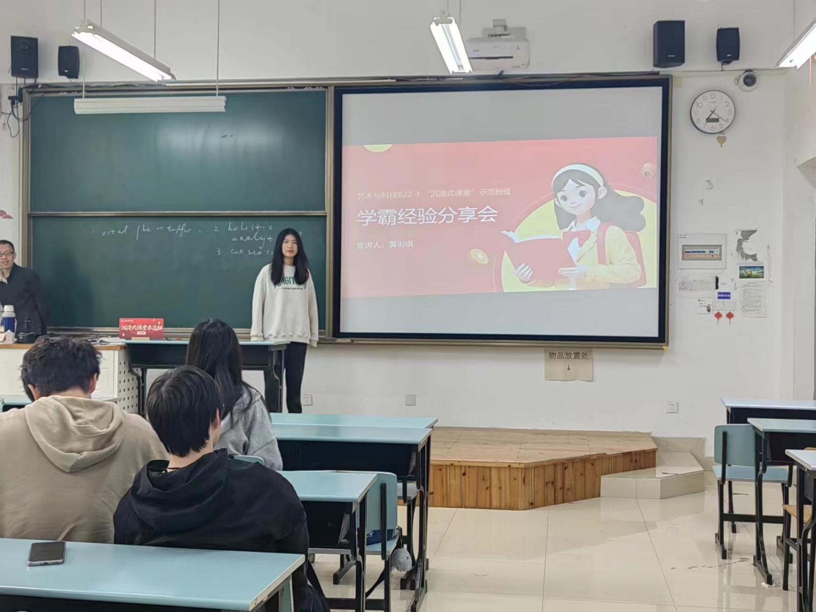 艺术与科技B22-2的黄译萱和朱海伦两位同学分享了自身学习经验,内容包括如何平衡学习与工作的关系、高效备考计算机与四级、制定时间规划表等,帮助班级同学进一步明确的学习方向。