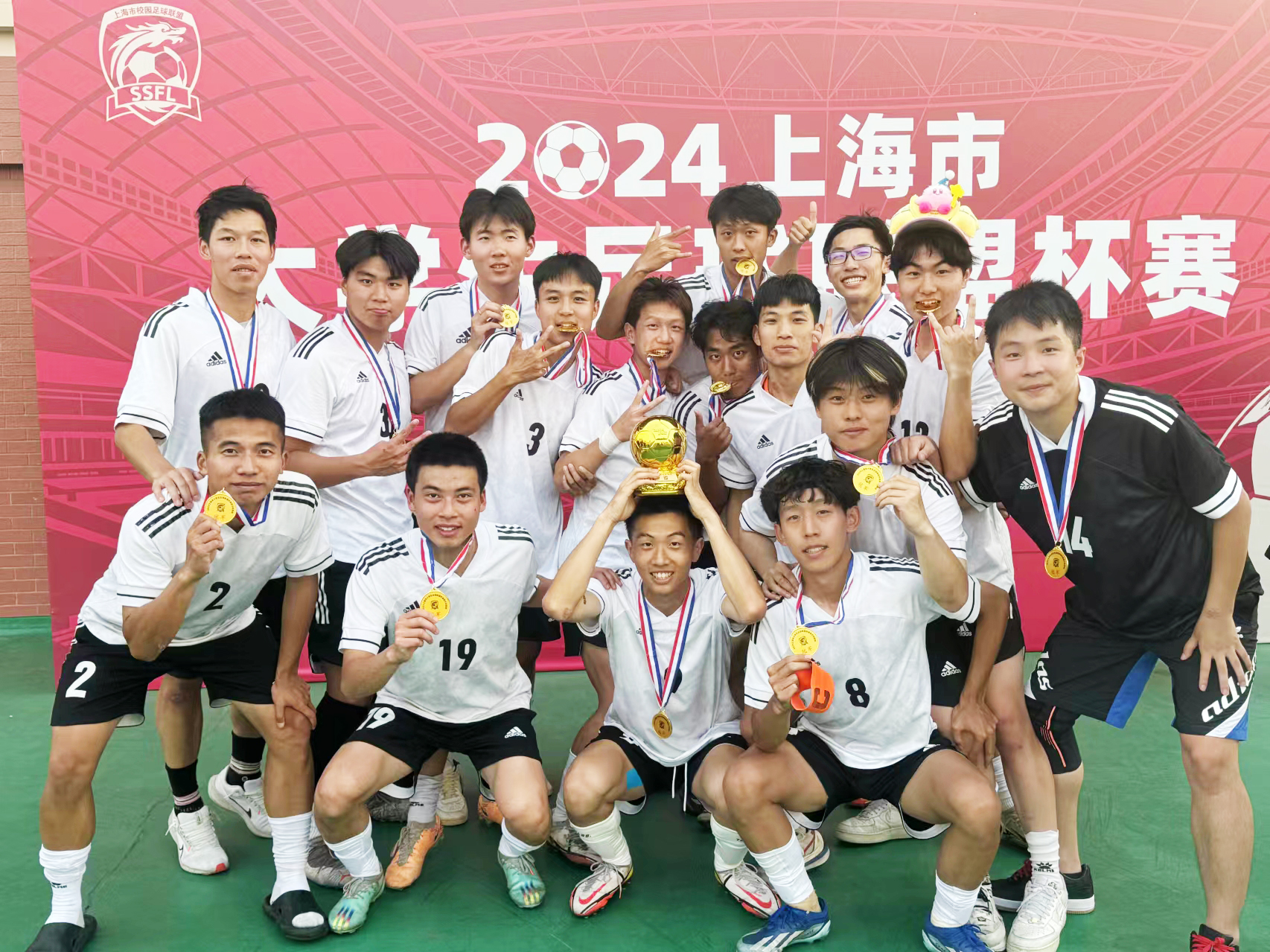 6月3日,由上海市教育委员会、上海市体育局、上海报业集团共同主办的2024上海市大学生足球联盟杯赛在上海健康医学院落下帷幕。上海建桥学院男子足球队在领队刘彬、主教练刘丹宁和助理教练岳志强老师带领下夺得男子校园组冠军。同时,主教练刘丹宁荣获“最佳教练员”,商学院物流管理B21-1金承宇荣获“最佳运动员”称号。