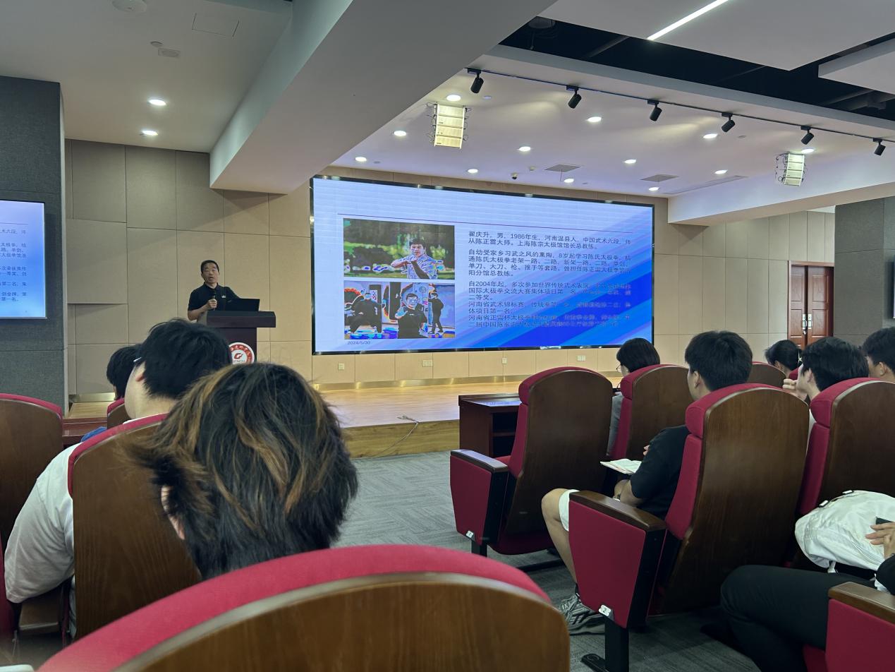 景老师从太极拳的申遗开始讲述,围绕“树立民族精神”、“提高大学生的道德情操”、“培养大学生的和谐理念”、“有利于身心健康”等方面,论述了太极文化在高校思政教育中的实际价值,介绍了我校五年来开展陈式太极拳教学的探索实践。讲座内容丰富详实,氛围生动活泼,师生们沉浸其中,深入了解了中国传统文化的精髓,增强了文化认同,坚定了文化自信。