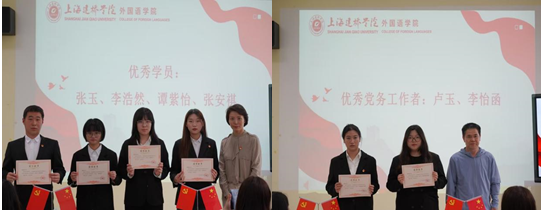 经培训及考察,学院党委授予张玉、李浩然、谭紫怡、张安祺“优秀学员”称号,为卢玉、李怡函颁发了“优秀党务工作者”荣誉证书。