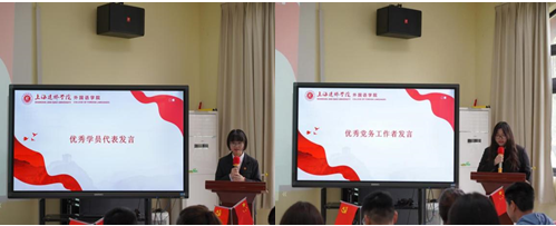 优秀党务工作者李怡函总结了培训班课程的设置安排以及所思所感。自开班至今,入党积极分子们一共完成了五讲党课学习,参与了两场实践活动——“学习雷锋之打扫机房活动”、读书节“用外语讲好中国故事”系列赛事。学员们积极响应,理论联系实际,充分做到学以致用、知行合一,在实践中学习、成长、锤炼自己,不断提高认识世界、造福世界的能力。她认为培训班工作的顺利进行,离不开所有人的努力以及对职责的坚守。党务工作者应当发挥“引路人”的作用,保证每节党课的顺利开展,落实培训期间的各项规章制度,将纪律意识贯穿学员学习的全过程,做好考勤及日常工作,为党课保驾护航,指引学员在思想和行为方面向善、向上、向前。