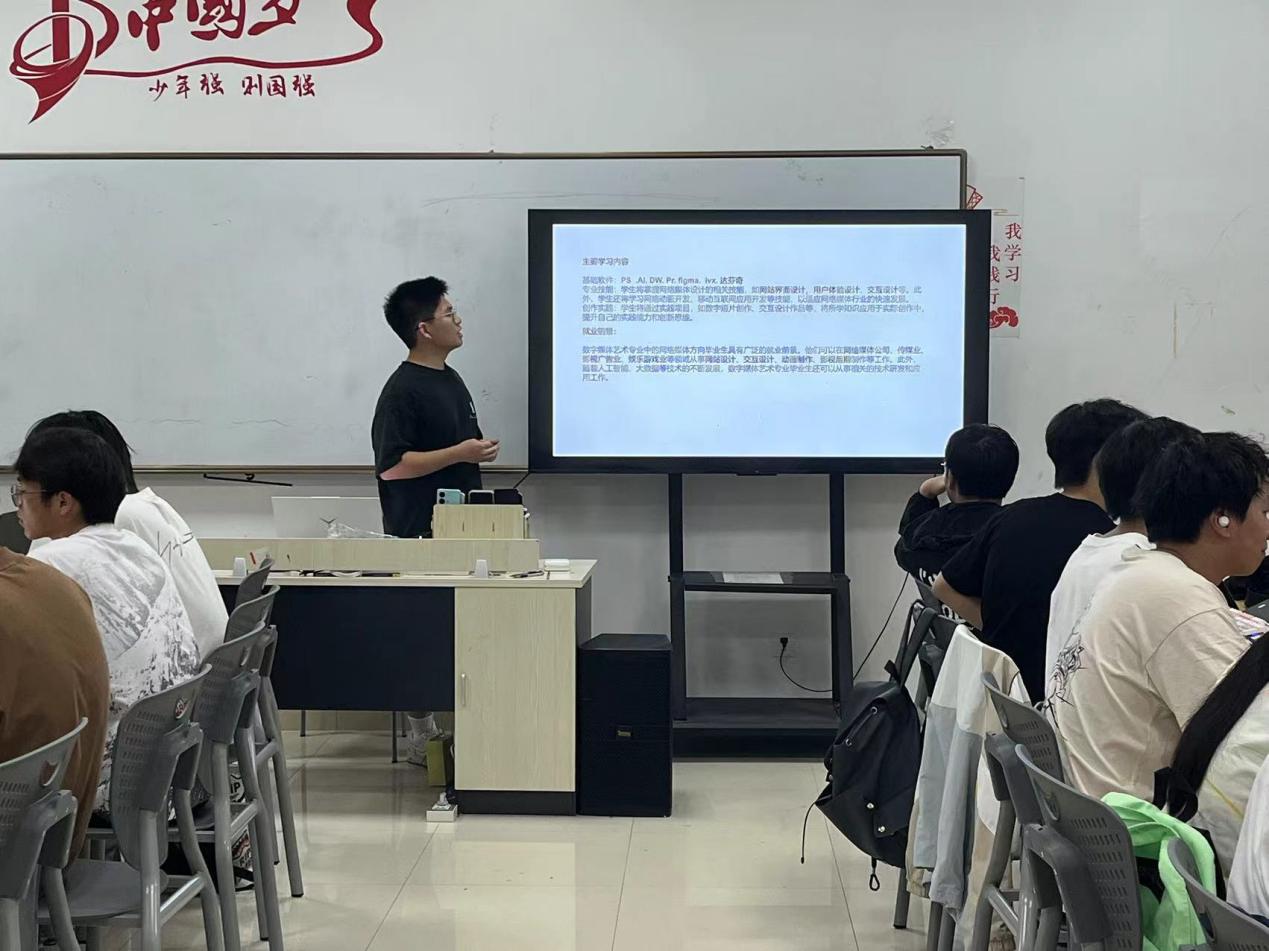 在会上,数字媒体艺术专业课助教首先向各位同学详细解读了网媒和游戏这两个专业方向的核心内容和特色。他强调了这两个专业方向在当前数字化时代的重要性和广阔的发展前景。随后介绍了两个专业方向的课程内容、学习规划以及未来就业方向。环境设计专业课助教重点讲解了景观设计、室内设计等方向的学习内容与发展前景。助教们通过实例分析和案例分享,让同学们对各个方向的实际应用有了更加直观地认识。