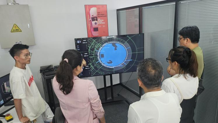 公司负责人薛冰向教师团队展示了其自主研发的无人驾驶小巴及其相关技术,包括远程自动驾驶系统、车路协同交通控制机等。这些技术展示了公司在智能驾驶领域的领先地位和创新能力。公司技术代表李晓东、王俊龙是数艺专业2021届和2023届毕业生,李晓东带领到访老师们参观了公司的办公场地,实地了解了公司的研发和工作环境,对公司的技术实力和生产能力有了更直观的认识。