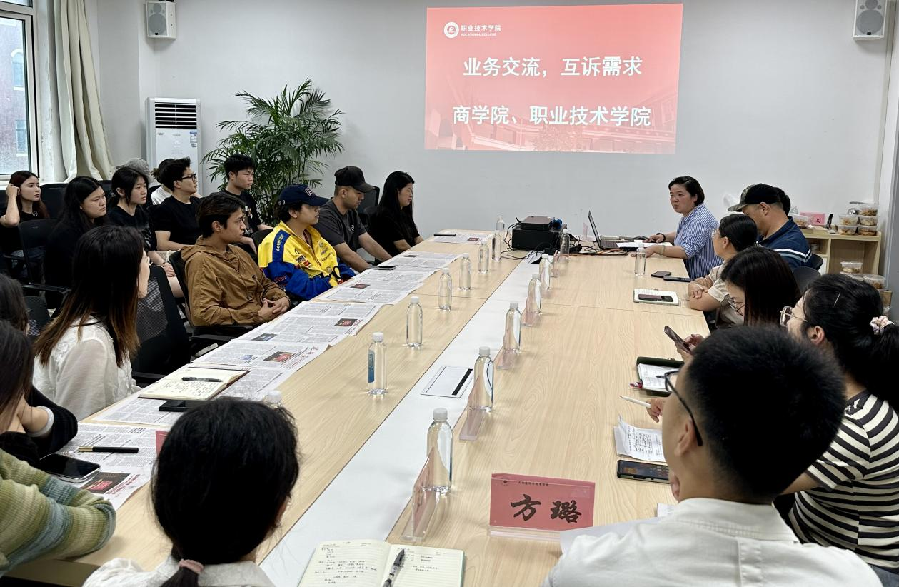 为贯彻落实中央民族会议精神,学习习近平总书记关于加强和改进民族工作的重要思想,职业技术学院和商学院共同开展少数民族学业帮扶座谈会,旨在加强少数民族学生之间的交流,鼓励少数民族学生学习活动的开展。职院党委书记王加宁、学生处副处长张莉、职院党委副书记马冯莉、商学院党委副书记俞海燕、少数民族辅导员居麦尼亚孜·吾布力艾山以及相关辅导员参加会议,会议由马冯莉主持。