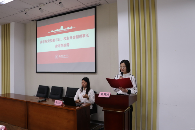 活动伊始,商学院党委副书记、校友分会副理事长俞海燕致辞,她向即将受聘的校友召集人表示热烈的祝贺,对大家以后的工作提出建议和要求,希望广大校友牢记母校的殷殷嘱托、牢记恩师的谆谆教诲、牢记“感恩、回报、爱心、责任”八字校训,在平凡的岗位上书写不平凡的人生,同时也祝愿商学院校友会工作取得更辉煌的成绩。