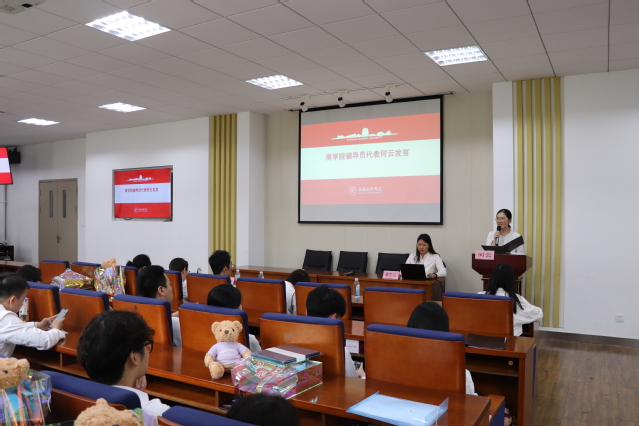 随后,辅导员代表何云发言,对这42位同学表示祝贺,庆祝他们正式成为2024届校友召集人,希望他们能够肩负起校友召集人的使命,认真履行召集人的责任和义务,推动商学院的校友会发展,迈向更高的阶梯,并表示希望各位召集人能够鹏飞万里,扶摇直上。