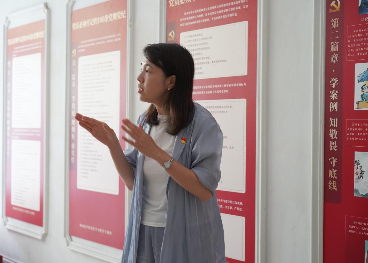 随后,全体毕业生党员一起参观了学院“学纪、 知纪 、明纪 、守纪”党纪学习教育专题展板。杜书记带领毕业生党员深入学习了本次党纪学习教育展三个篇章的内容,帮助毕业生党员明确党纪学习的重要性,让纪律意识不仅在校期间入脑入心,还要带入社会走深走实。