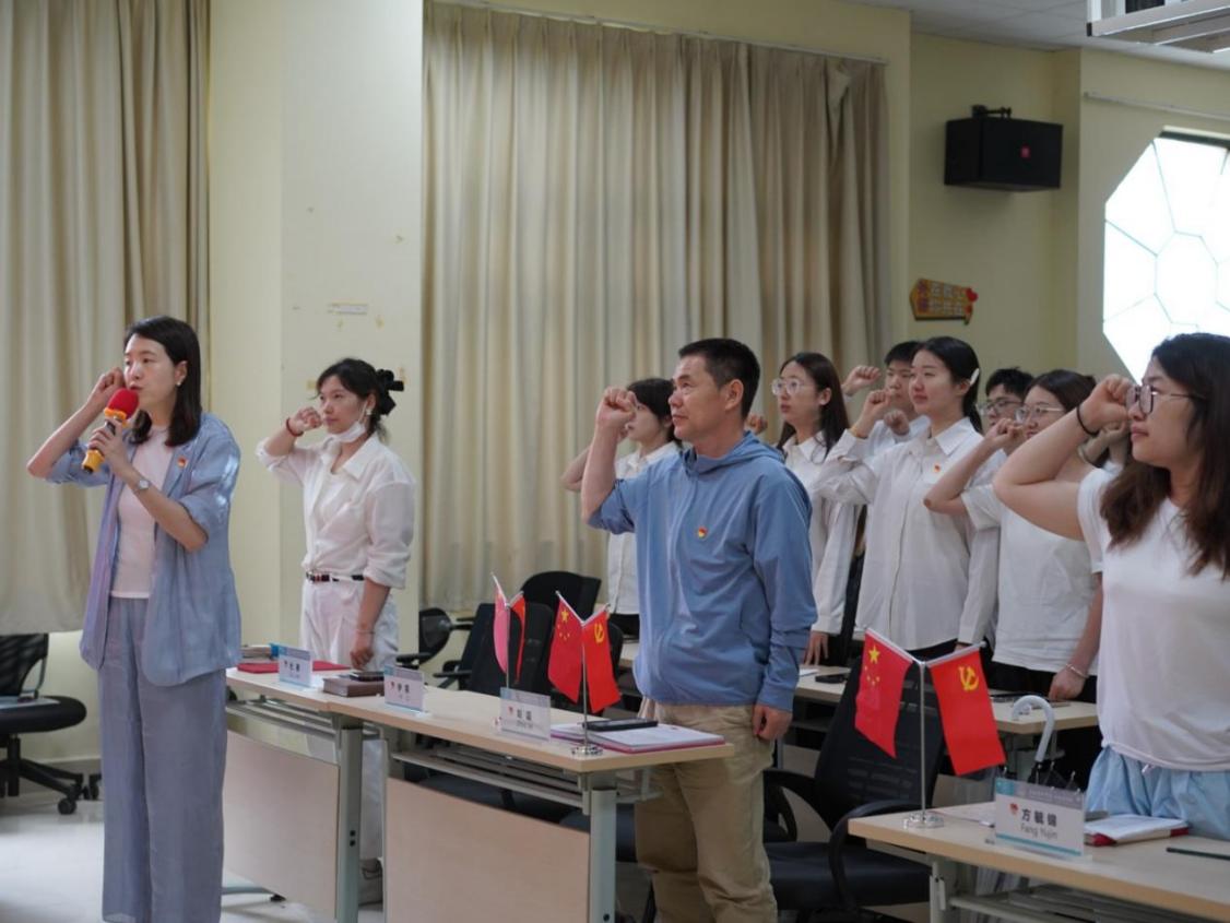 杜书记带领全体毕业生党员共同重温入党誓词,回顾初心使命。铿锵恢宏的誓词,给每一位党员带来强烈的震撼,希望大家能够坚定使命与奋斗的初心,将党的纪律内化于心、外化于行,在今后学习和工作的岗位上,能够时刻铭记党员身份。