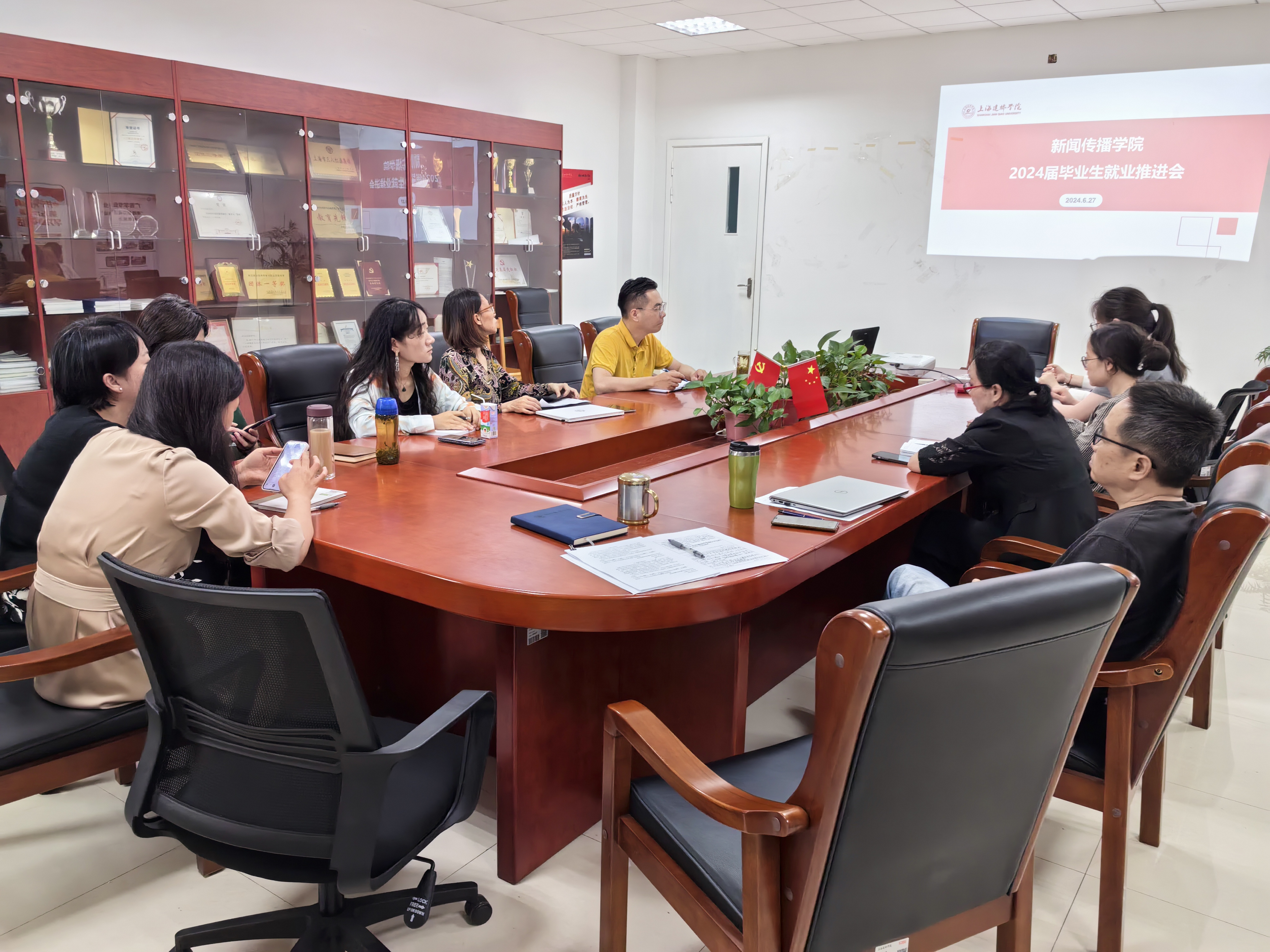 为有效推进新闻传播学院2024届毕业生就工作,6月27日上午,学院在学院楼219会议室召开2024届毕业生就业推进会。学院党委副书记吴成皓、学院副院长张建民、各专业正副系主任及毕业班辅导员参加会议,会议由党委副书记吴成皓主持。