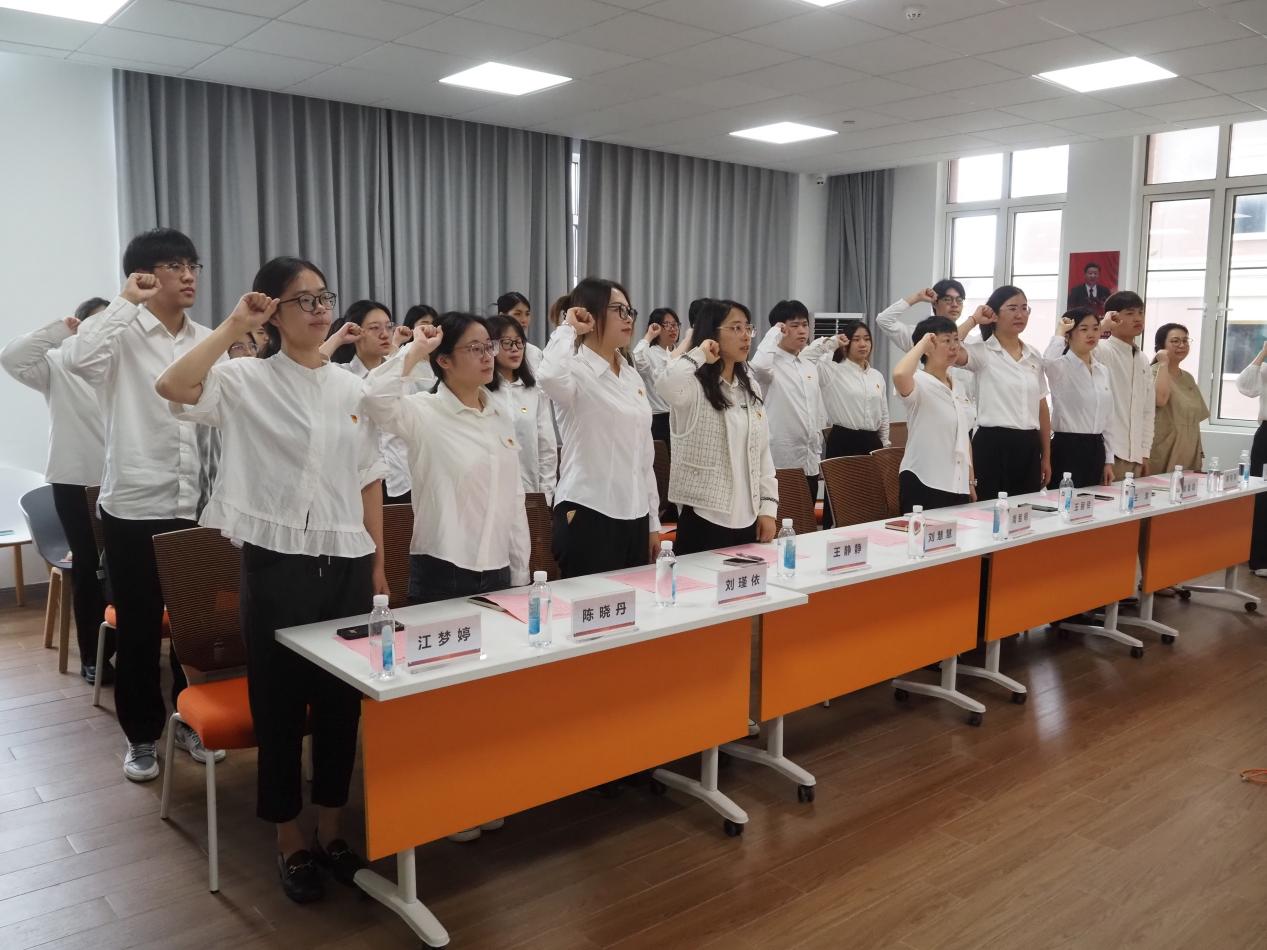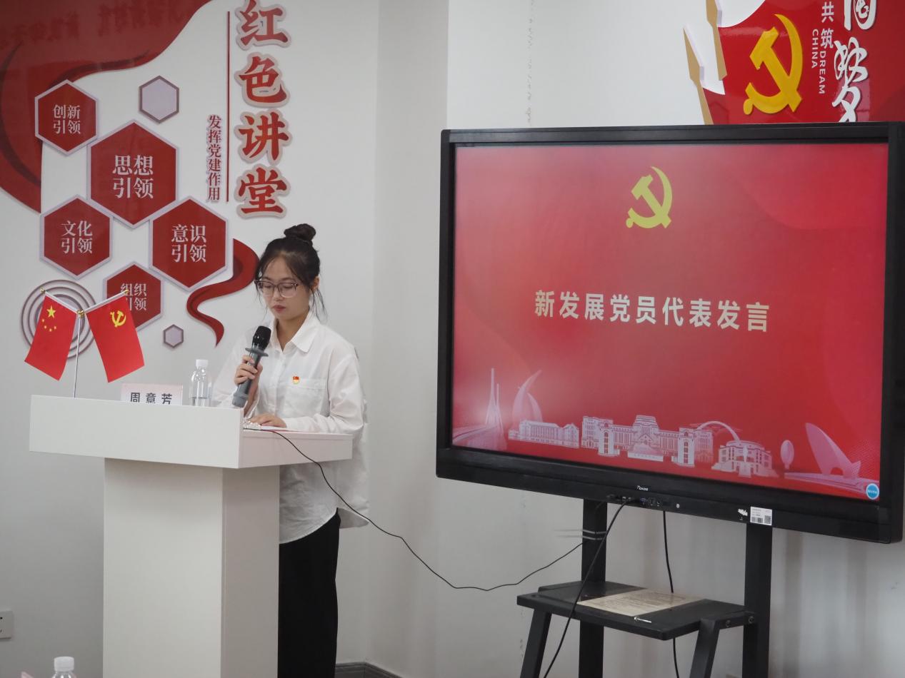 周书记带领新党员在党旗下庄严宣誓,一声声为共产主义奋斗终生萦绕耳际。新党员代表钱季婷向党组织表决心:第一,坚定理想信念,不断增强党员意识,加强党性修养。第二,强化理论学习,自觉用习近平新时代中国特色社会主义思想武装头脑。第三,努力创先争优,做一名思想作风过硬、积极开拓奋进的合格党员。