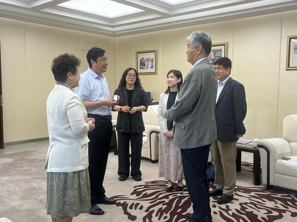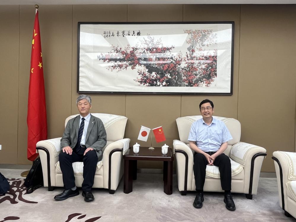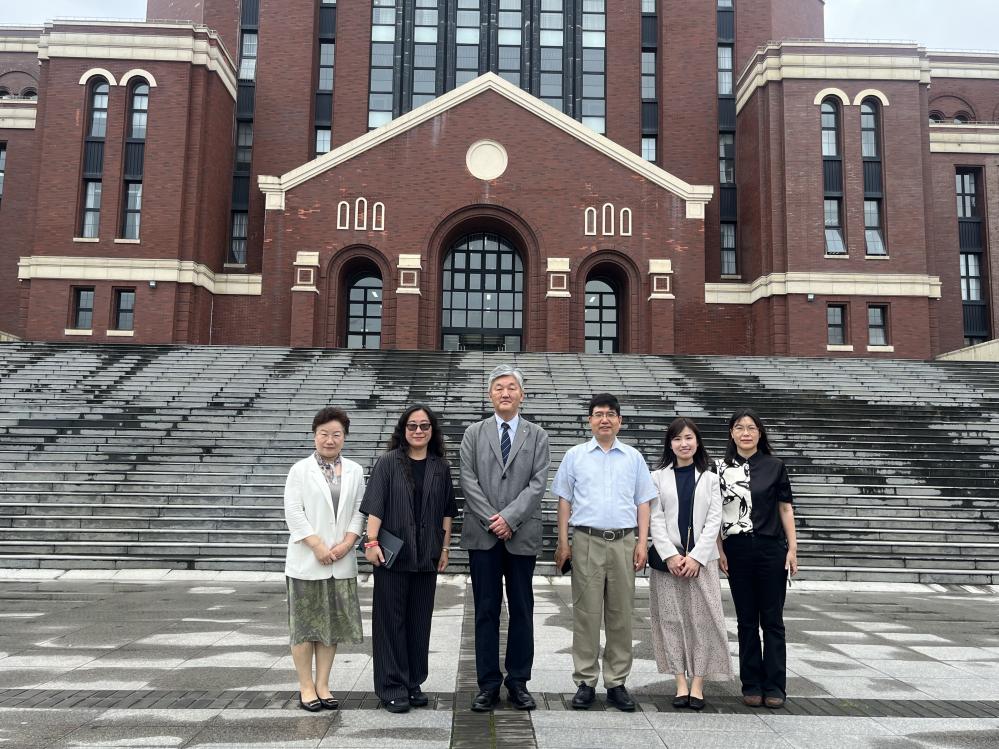2024年7月1日,日本札幌大学校长大森羲行,地域共创学群经营·会计学系主任汪志平,国际交流科职员蔡爽来我校访问交流。朱瑞庭校长,俞晓光副校长,外国语学院兼国际教育学院院长毛立群,外国语学院副院长王海燕,日语系主任赵萍,对外交流办公室主任梁月泉、职员张欢老师参与接待。
