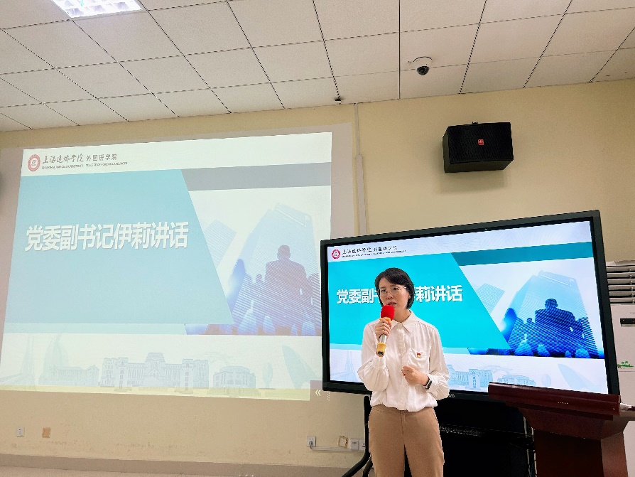 党委副书记伊莉讲话,伊莉老师嘱咐各位毕业生代表们,从今天起大家的身份就要有所变化,但要牢记自己是一名优秀的大学毕业生身份,在工作中要坚持外圆内方的做人做事原则,既要与人和善助人为乐,又要坚持底线原则不随波逐流,要多学习、多锻炼、多成长。同时伊莉副书记请同学们牢记无论以后大家走多远,外国语学院永远都是同学们的坚强后盾,愿我们各位校友联络人做好学校学院与同学们沟通的桥梁,学院会时刻关注同学们的发展,欢迎同学们常回学院看看。