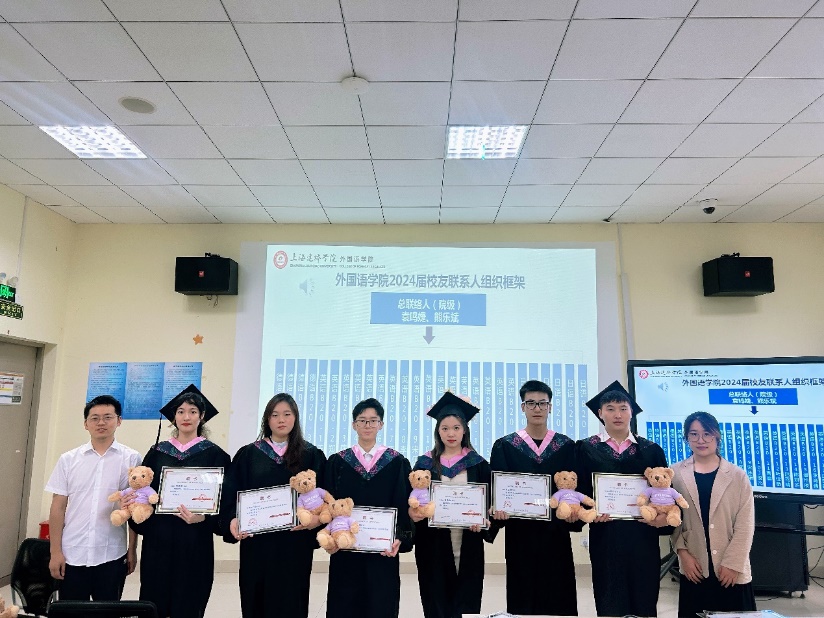 为有效地保持我院与校友间的沟通与联系,更好地凝聚和发挥校友力量,6月21日下午,我院在学院129会议室举行了校友召集人受聘仪式与优秀毕业生代表颁奖仪式。本次会议由外国语学院校友会秘书长朱心怡主持。学院党委副书记伊莉、奖助联络老师易贤恒、全体毕业班辅导员、校友召集人代表、市校优秀毕业生代表参加了此次受聘与颁奖仪式会议。