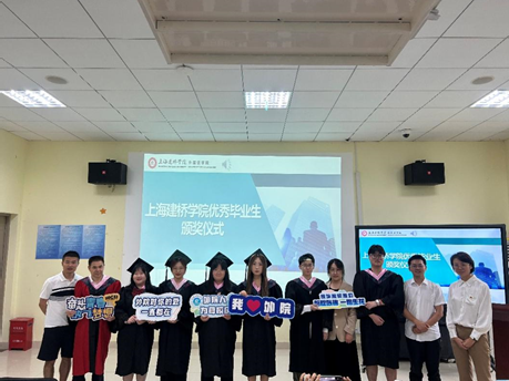 易贤恒老师宣读2024届市校优秀毕业生名单,由学院党委副书记伊莉与毕业班辅导员向同学们颁发证书并合影留念。