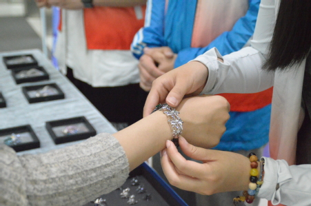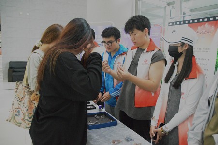 活动过程中,师生们纷纷驻足观赏,在工作人员的协助下,选择自己喜欢的首饰进行佩戴。负责老师向大家介绍每一款首饰的材质、制作工艺以及佩戴方法,让大家在欣赏的同时,更全面地了解珠宝首饰文化。参与者们分享着自己的佩戴体验和对首饰的看法,在此次活动中提升自己对美的认识和欣赏能力,现场气氛热烈而融洽。