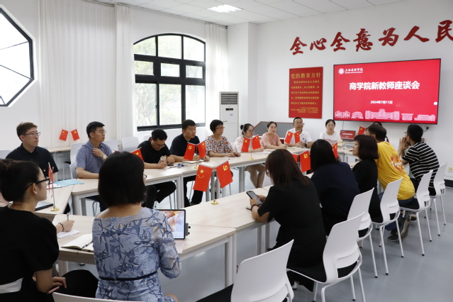 7月11日下午,商学院在党建服务中心举办新教师座谈会,旨在进一步加强教师队伍建设,增进交流,凝聚共识,共话发展。商学院院长高健、党委书记刘爱香、副院长尹卫华、副书记俞海燕等班子成员,以及学院本学期新进教职工共同出席。