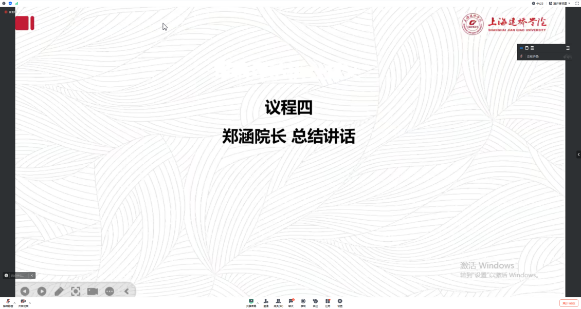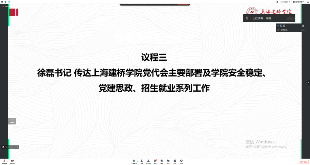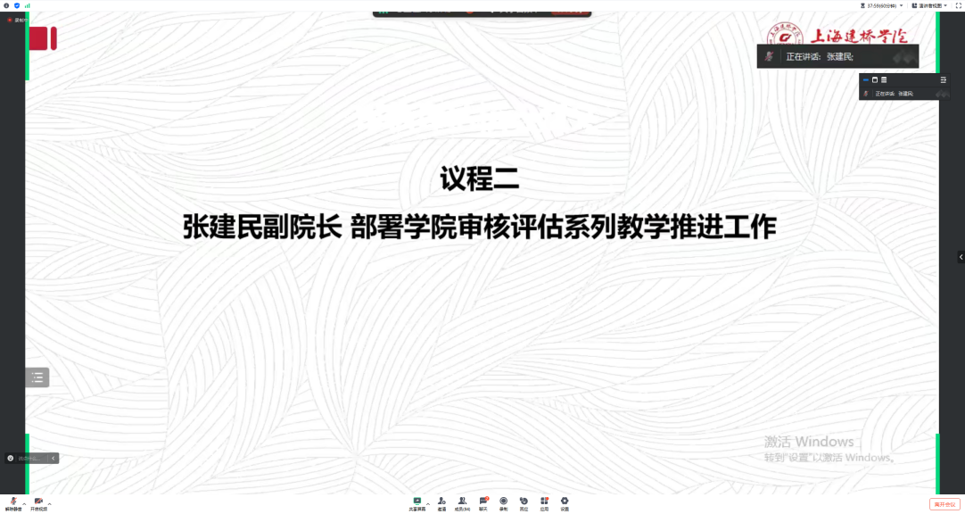 为学习贯彻上海建桥学院第四次党代会和全体中层干部(扩大)会议精神,聚焦本科教育教学审核评估、学科建设重点工作。7月12日20:00,新闻传播学院召开本学期期末全体教职工线上会议。学院党政领导、各系部主任、教师、辅导员参会。会议由办公室主任戈智永主持。