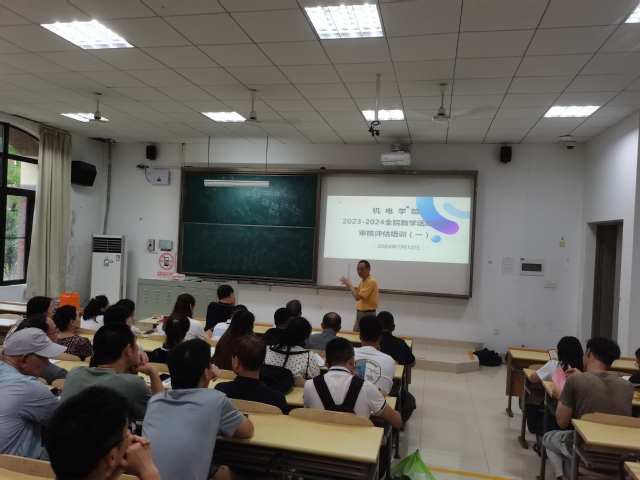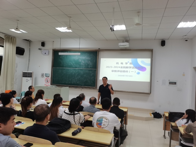 2024年7月12日下午13:00,机电学院在一教104召开全院期末教学活动暨审核评估培训会议。会议有吴国政书记主持。