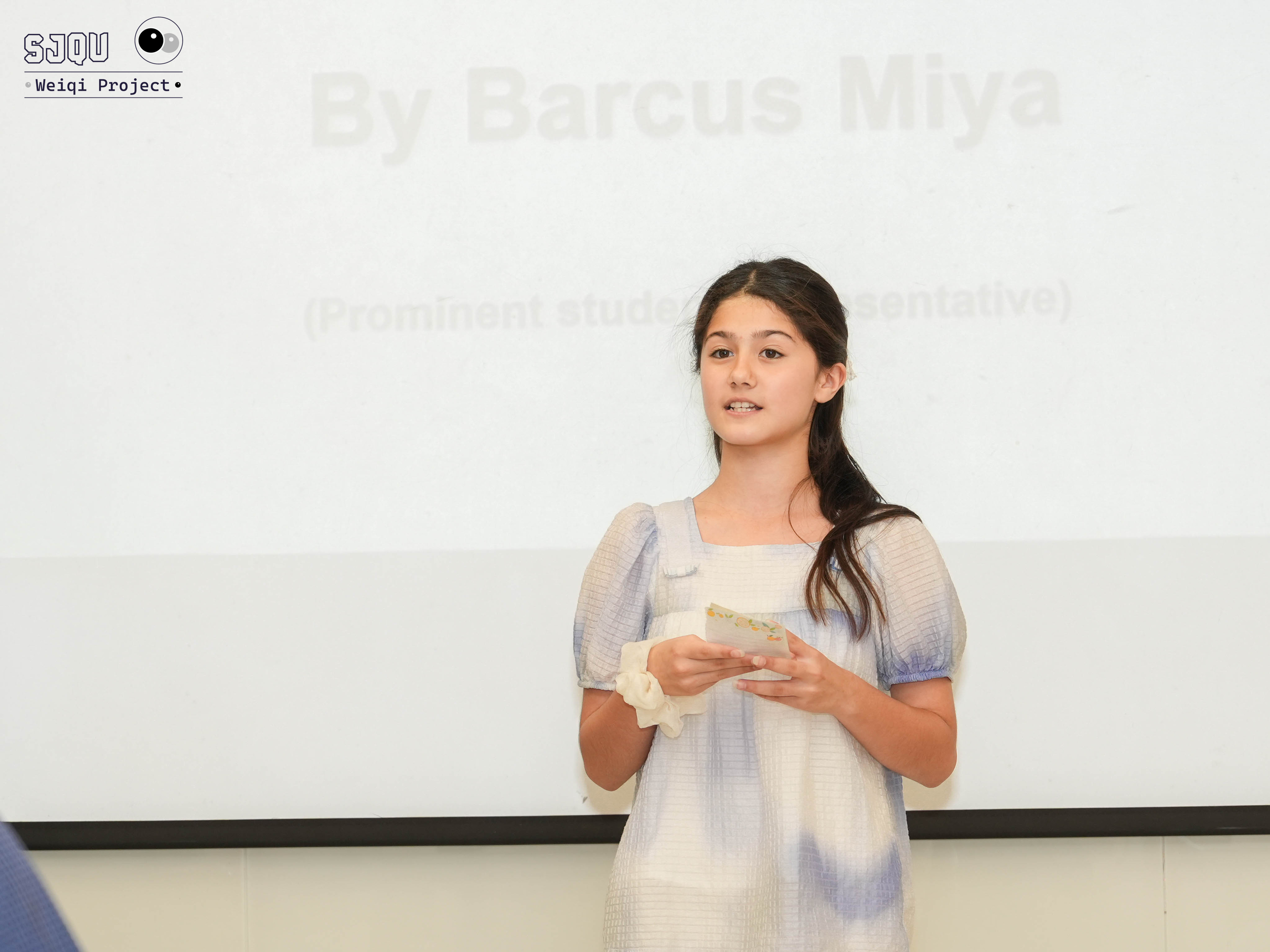 优秀学员代表Barcus Miya首先向项目团组的所有老师表示诚挚的谢意,感谢老师们教授了专业知识,还带领学员们体验了美丽的中国文化。她表示与同学们一起下棋,讨论策略,共同进步,让这个夏天变得非常特别和充实。在建桥,她收获了成长。展望未来,她相信大家将带着通过中国围棋班项目获得的知识和精神向前迈进。无论面临何种挑战,他们都将以围棋棋盘上展现出的冷静和勇气去应对。