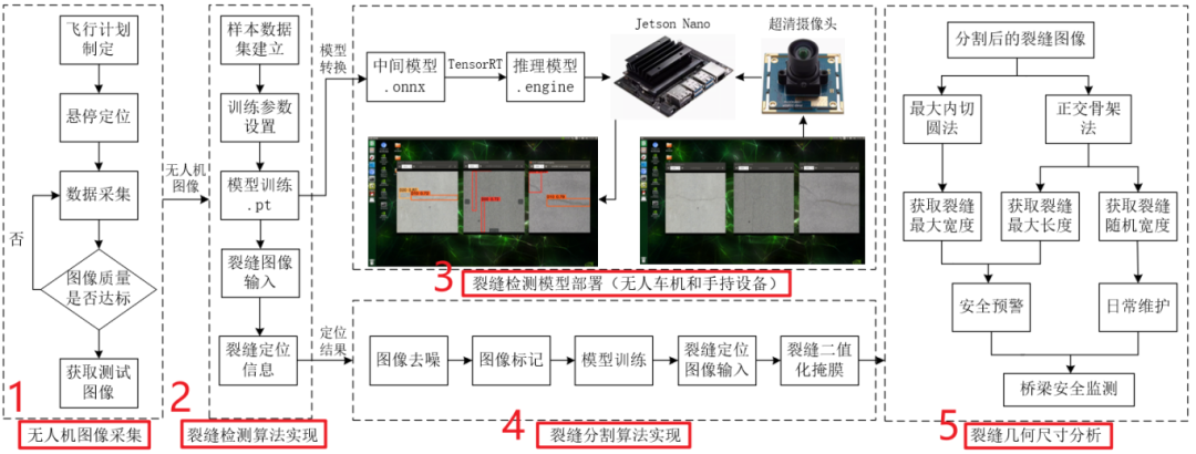 项目介绍:该项目采用数字图像法进行结构表面裂缝识别,并将其部署在边缘设备上,以支持无人车和无人机的应用。无人车机辅助巡检,能够快速适应不同类型和规模的基础设施,如桥梁、道路、隧道、坝体等多种工程结构裂缝。与传统的人工检测方法相比更经济、更高效、更精准,且未来能够实现真正的无人值守。