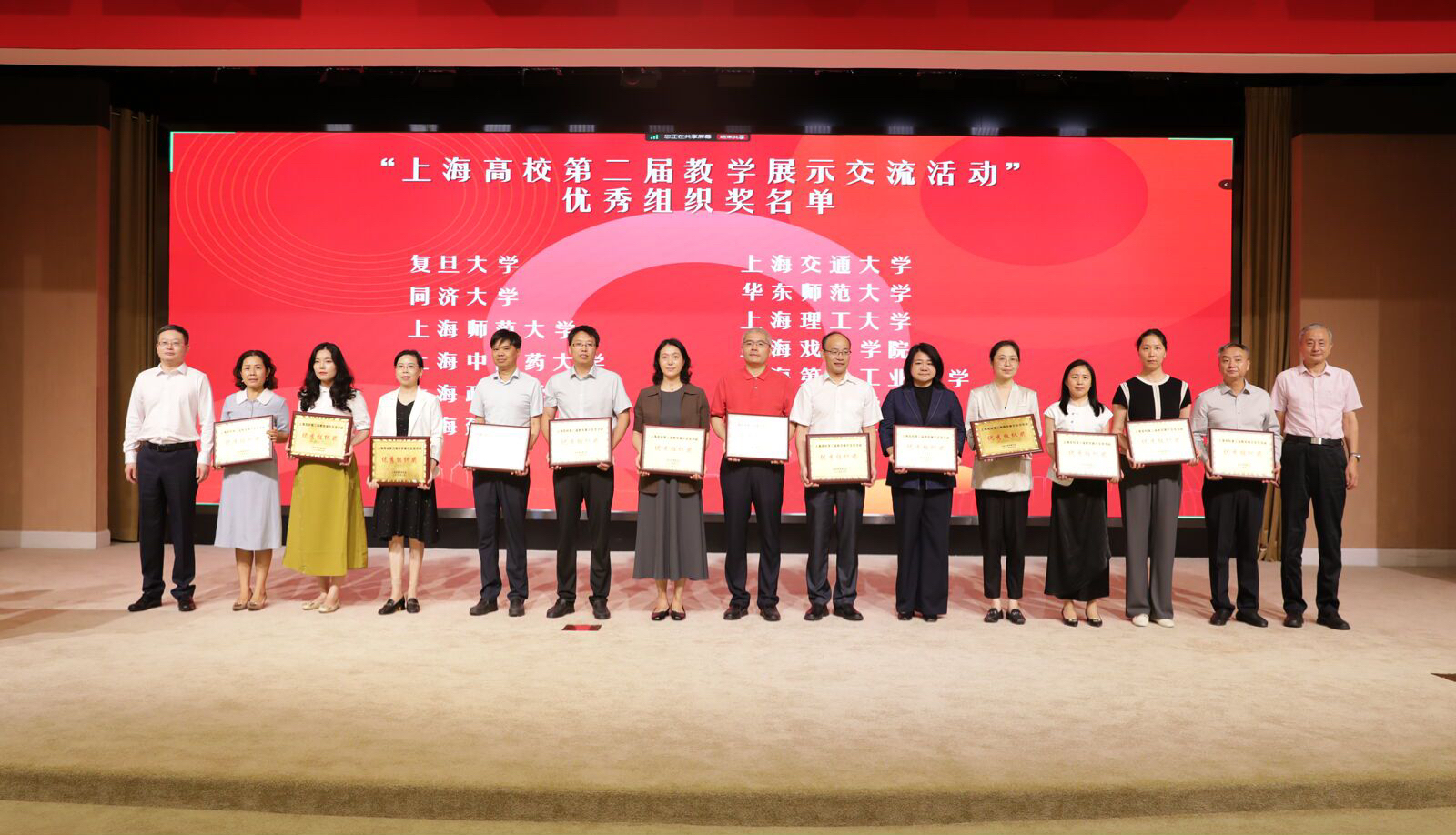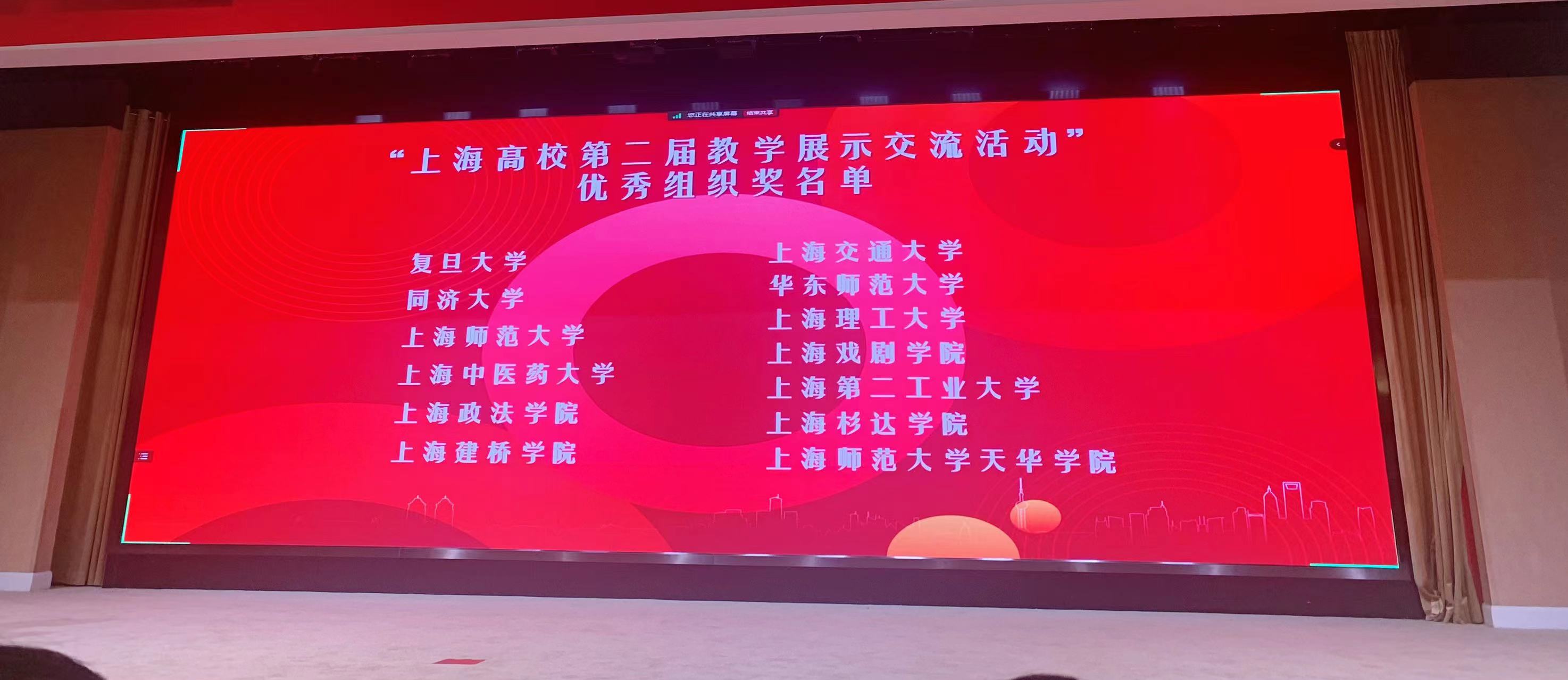 “上海高校第二届示范课堂展示交流活动”由上海市教育委员会主办,复旦大学承办。全市30多所高校积极参与,围绕第二批上海高校示范性本科课堂建设和各校教师教学发展特色活动开展交流互鉴,并在全市高校范围内进行共享,有效促进了各高校之间的协作互联。会上,总结展示了第二届“上海高校示范性本科课堂”暨第二届教学展示交流活动成果,为入选2023学年度“上海高校示范性本科课堂”的课程和获得“上海高校第二届教学展示交流活动优秀组织奖”的高校颁发了证书和奖牌。