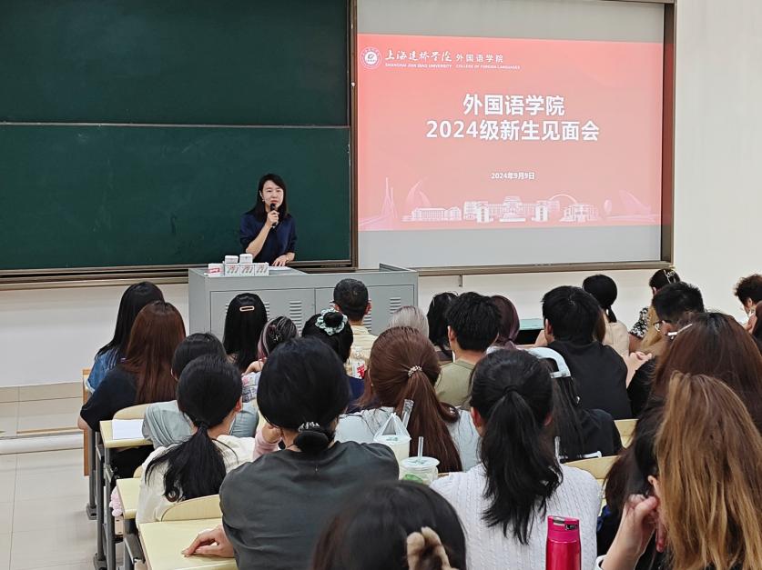 2024年9月9日上午,外国语学院2024级本科新生见面会在三教120教室举行。外国语学院党委书记杜鹃、副院长王海燕、院长助理孔辉、陈银春,各系室主任,分团委书记、新生辅导员以及全体2024级本科新生参加了活动,会议由党委副书记伊莉主持。