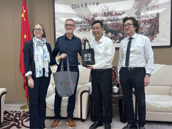 2024年9月23日,美国伍德伯里大学校长Jeff Bellantoni先生、雷德兰兹大学副校长Adrienne McCormick女士等来我校访问交流。朱瑞庭校长,杨伟人书记接待了来访贵宾,对外交流办公室主任梁月泉,国际设计学院院长金亨锡陪同。
