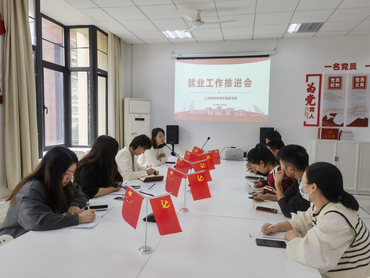 2024年10月10日上午10点,外国语学院在303会议室召开2025届毕业生第一次就业工作推进会,院党委副书记伊莉和24届、25届毕业班辅导员出席,会议由杜鹃书记主持。