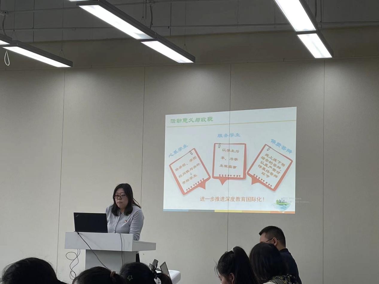 最后,周英芬书记对本次交流研讨会做了总结。她指出,六位老师都做了精心准备,介绍各自参与海外参访、送学生海外实习和海外升学的经验,分享赴日为学生做毕业论文答辩的收获与体会,以及自身在海外留学、读博的经历与感悟。从不同角度展示对教育国际化的理解,对办好学院中外合作项目的信心和决心,也表露出对党的教育事业的无限忠诚和对青年学生的无限热爱。本次交流研讨在学院产生了强烈共鸣,将弘扬教育家精神落实到具体工作中,为打造高素质专业化教师队伍,进一步推动学院高质量发展起到了积极作用。