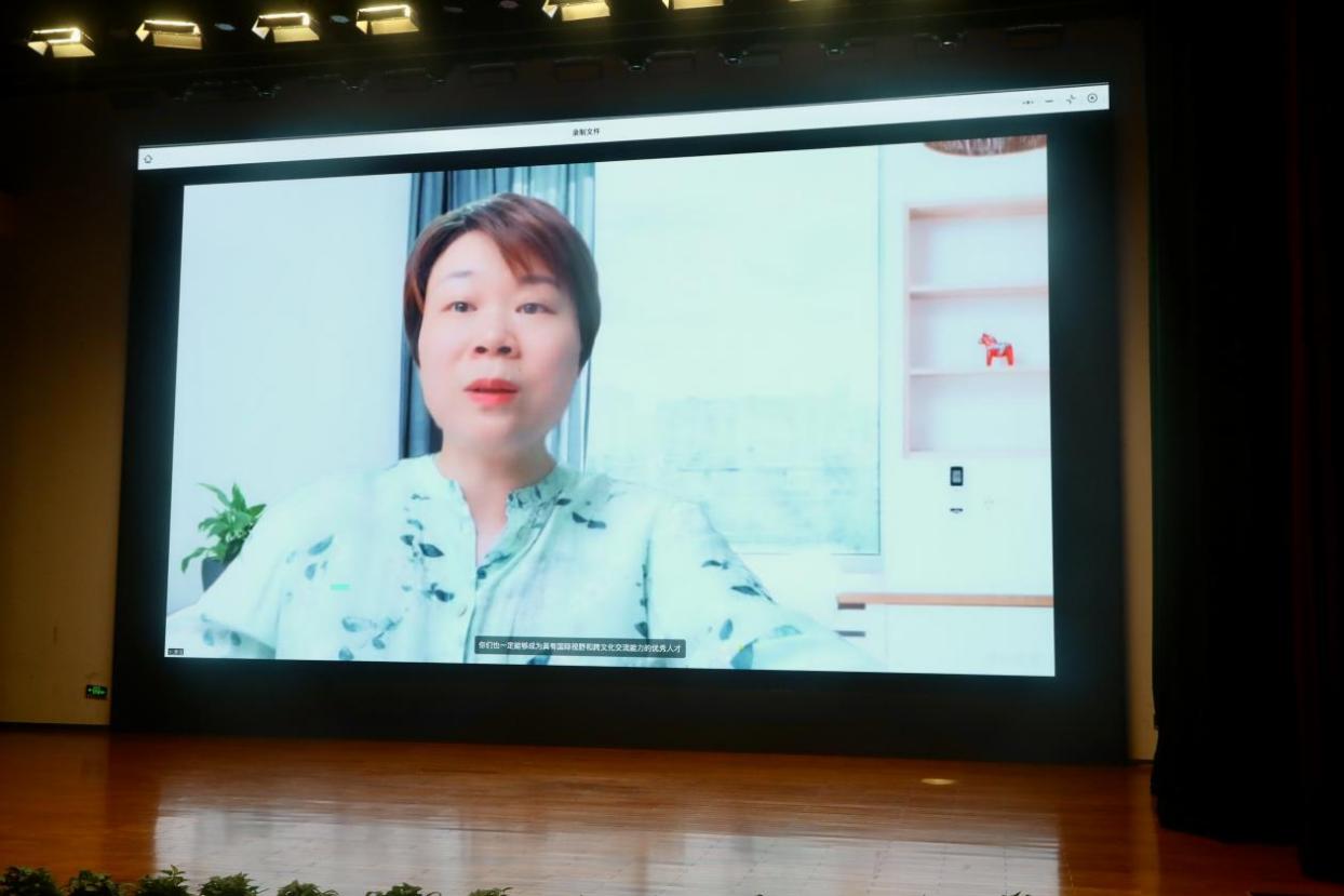 周英芬书记以“扎根中国大地办教育,培养堪当民族复兴大任的时代新人”为题展开讲话。周书记表明贯彻党的教育方针的重要性,强调国教学子应具备“品德修养、专业能力、表达沟通、自主学习、健康发展、协同创新、信息应用、国际事业”八项核心素养。周书记表示,当下应向青年学生开展国情教育、理想教育,确保学生能够成为底色正,听党话、跟党走,出国留学后不变质、不变色,回国之后能够报效祖国、奉献社会,能够用外语讲好中国故事的人。希望新生们在校四年里,身心健康,快乐成长,学有所长。