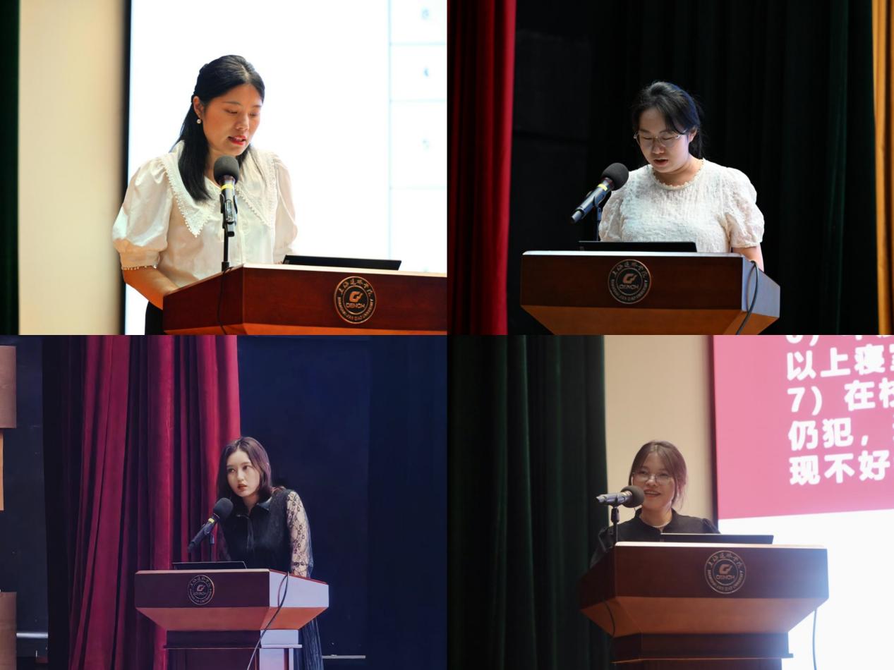 学院辅导员杨静老师、徐海霞老师、林锦老师、刘志霞老师分别介绍了学生工作,包含学生社区、劳动教育课程、心理健康教育、评奖助困等内容,让同学们更加全面了解大学的学习与生活。