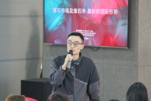 接着,吴博士探讨了宝石产地与市场价格趋势,结合鉴定报告和商业分级标准,分析了产地判定方法和价格影响因素,如全球经济、消费者偏好等。他分享了宝石鉴定证书的重要性及宝石美学的意义,他强调真正的美在于宝石的独特性与文化历史价值。